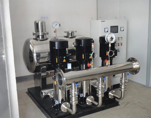 變頻恒壓供水設備是一種新型的節能供水設備。變頻恒壓供水設備系運用當今最先進的微電腦控制技術,將變頻調速器與電機水泵組合而成的機電一體化高科技節能供水裝置。變頻恒壓供水設備以水泵出水端水壓為設定參數,通過微機自動控制變頻器的輸出頻率從而調節水泵電機的轉速,實現用戶管網水壓的閉環調節,使供水系統自動恒壓穩于設定的壓力值:即用水量增加時,頻率提高,水泵轉速加快;用水量減少時,頻率降低,水泵轉速減慢。