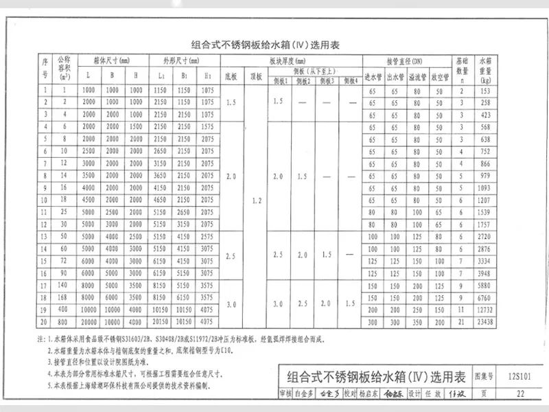這里推薦參考:國(guó)家建筑設(shè)計(jì)標(biāo)準(zhǔn)圖集 - 矩形給水箱圖集:12s101標(biāo)準(zhǔn)圖集(02s101圖集的新版),推薦參考圖集中22-24頁(yè)標(biāo)準(zhǔn)即可。